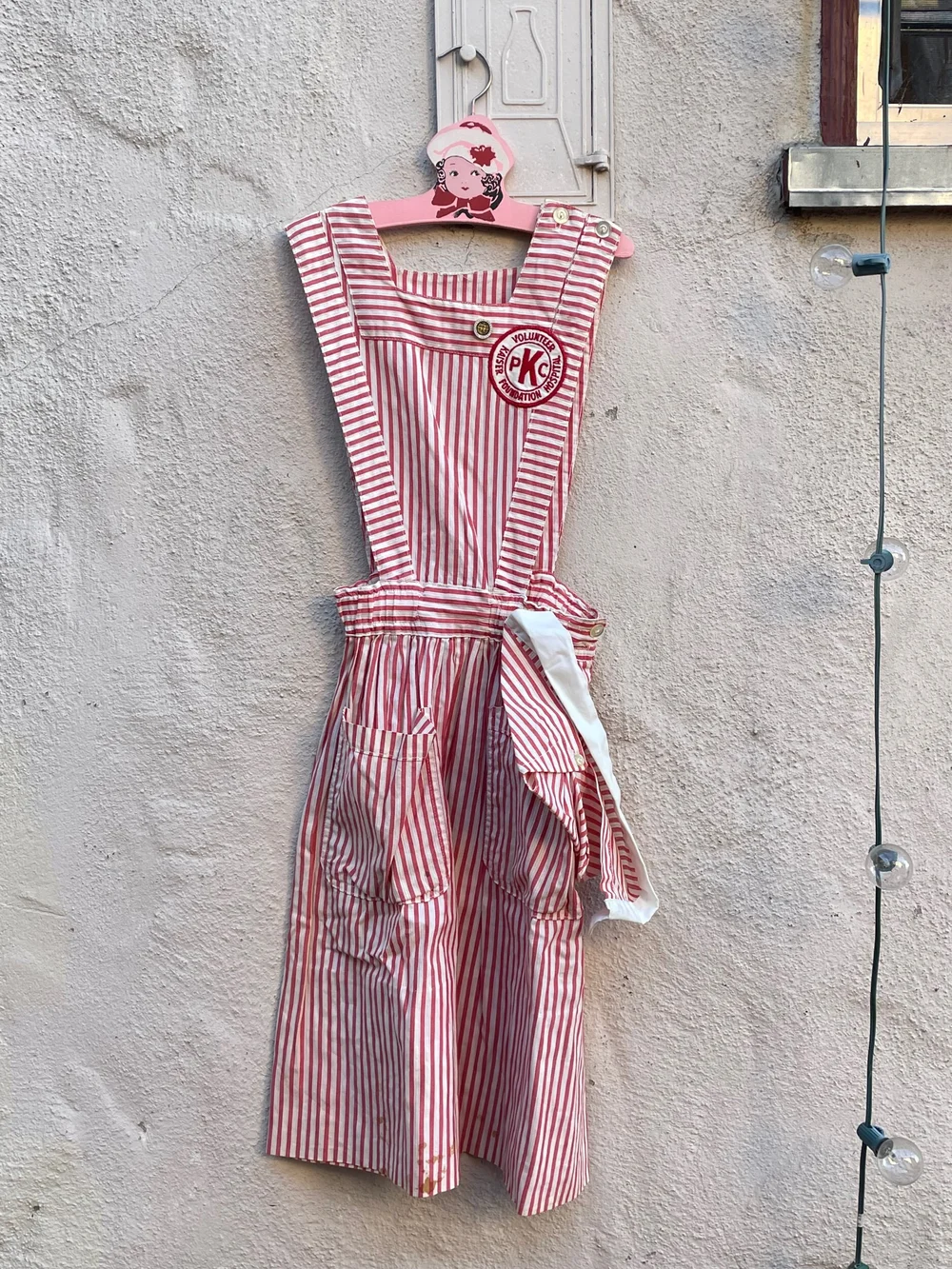 . Vintage 1950s Coral Pink NURSES Hospital Uniform Apron Dress. The uniforms were sewn by the girls of the class from material provided. Stripers Bar in Piscataway NJ.