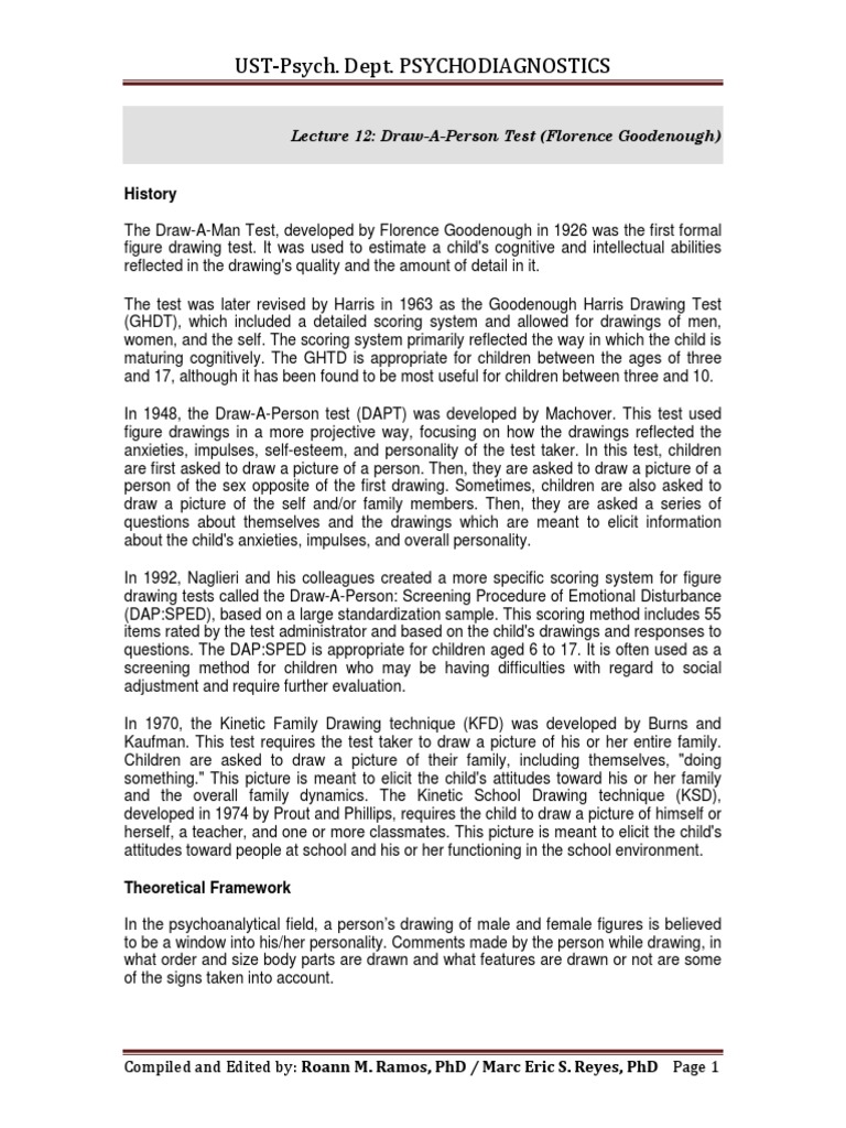 Figure-drawing test any test in which the participant draws a human figure used as a. The Draw-a-Person test DAP DAP test or GoodenoughHarris Draw-a-Person test is a psychological projective personality or cognitive test used to evaluate children and. At the end you.